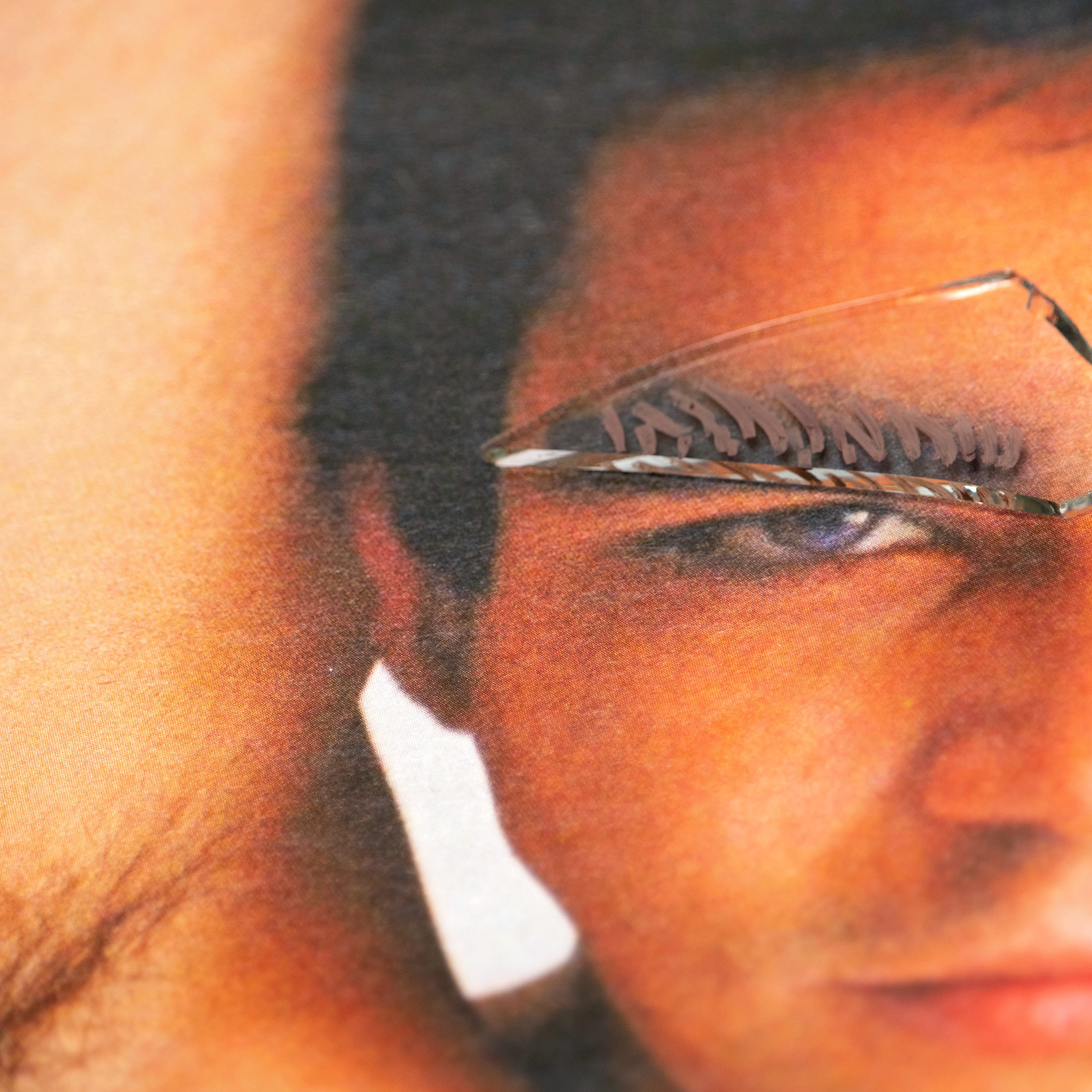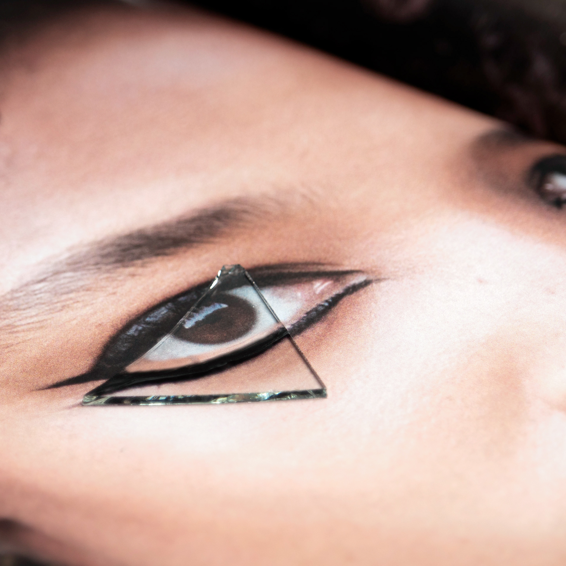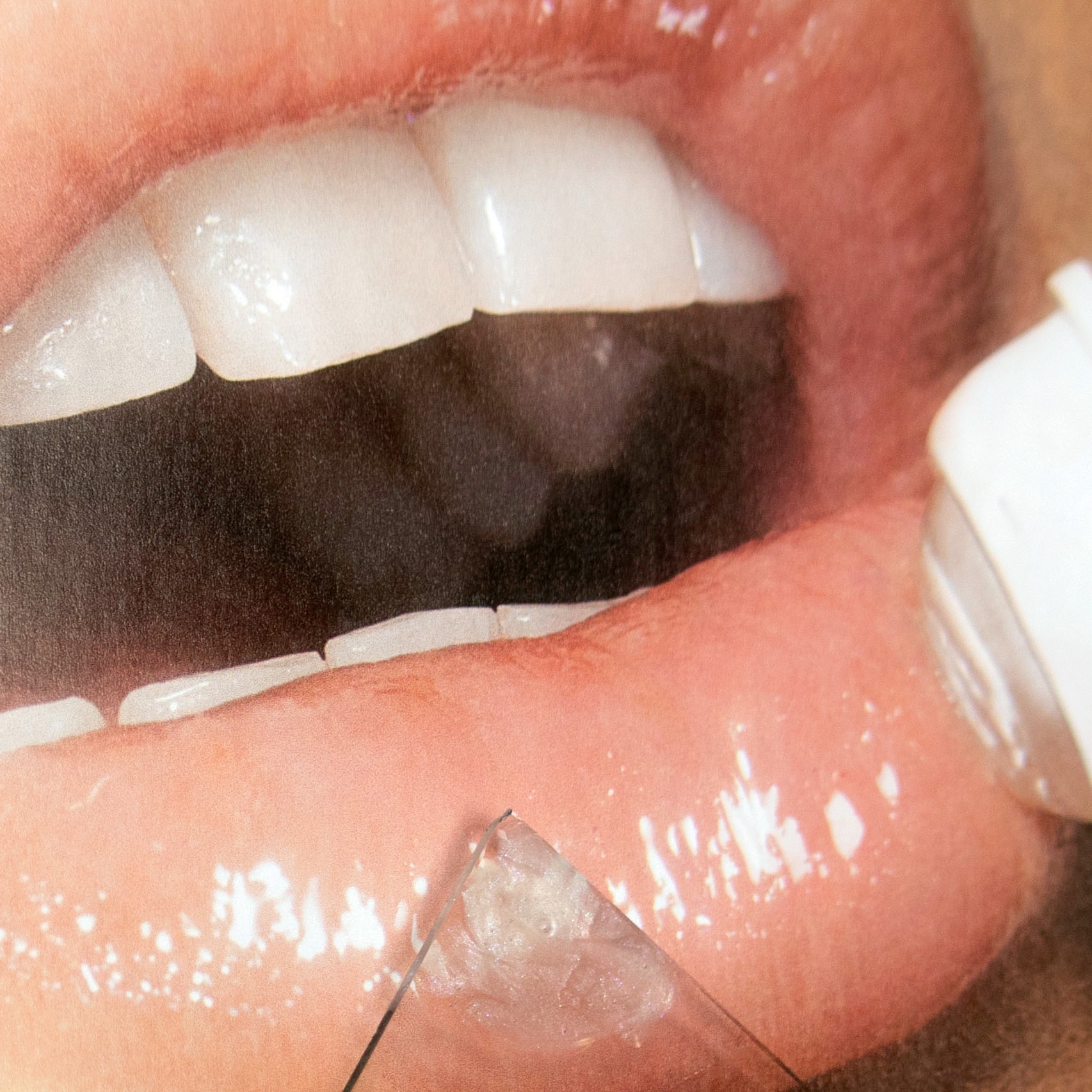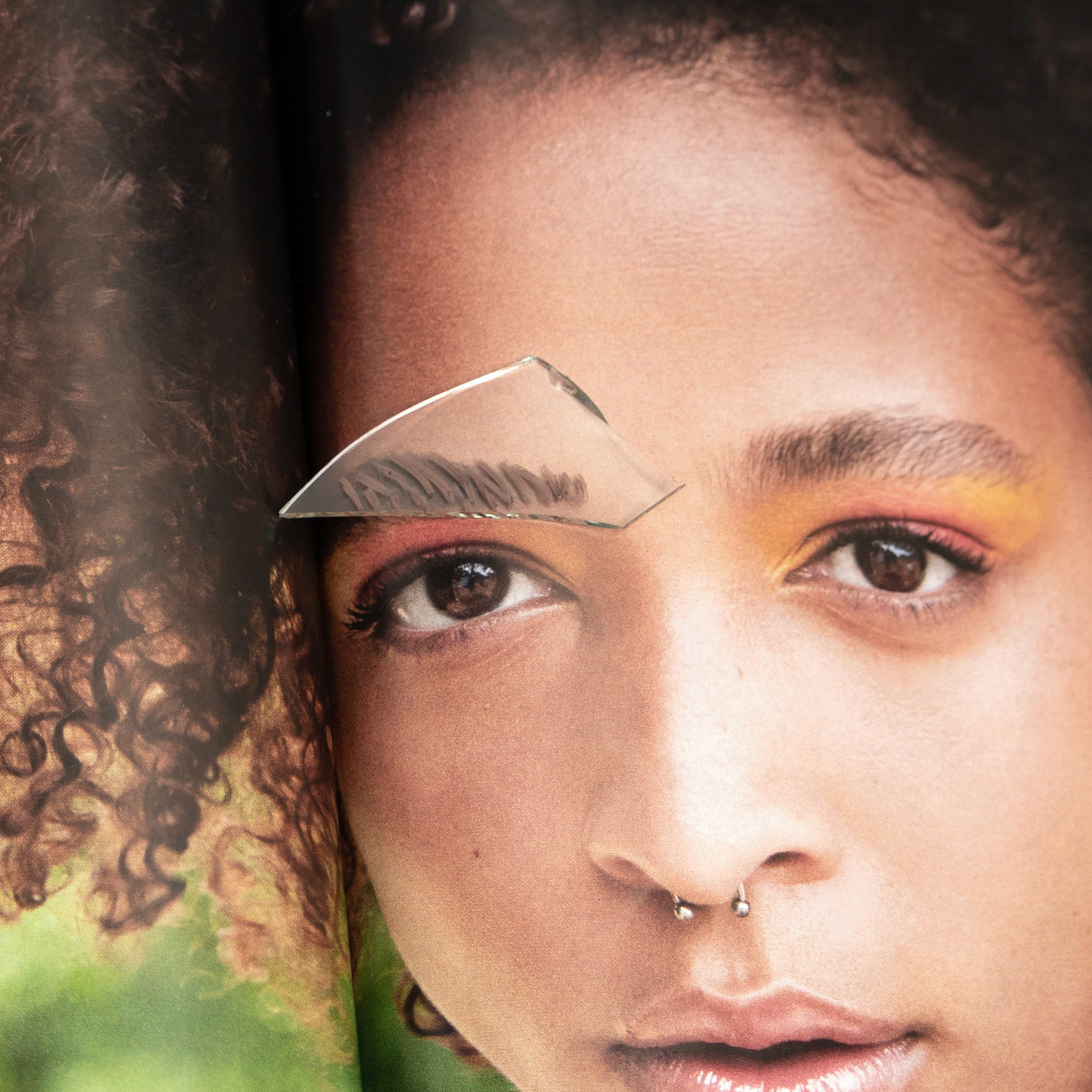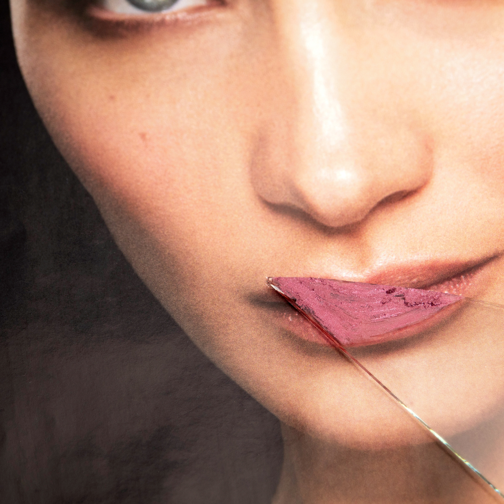 , I have been utilizing Polaroid film, print magazines, glass (shards and sheet), and cosmetic materials.