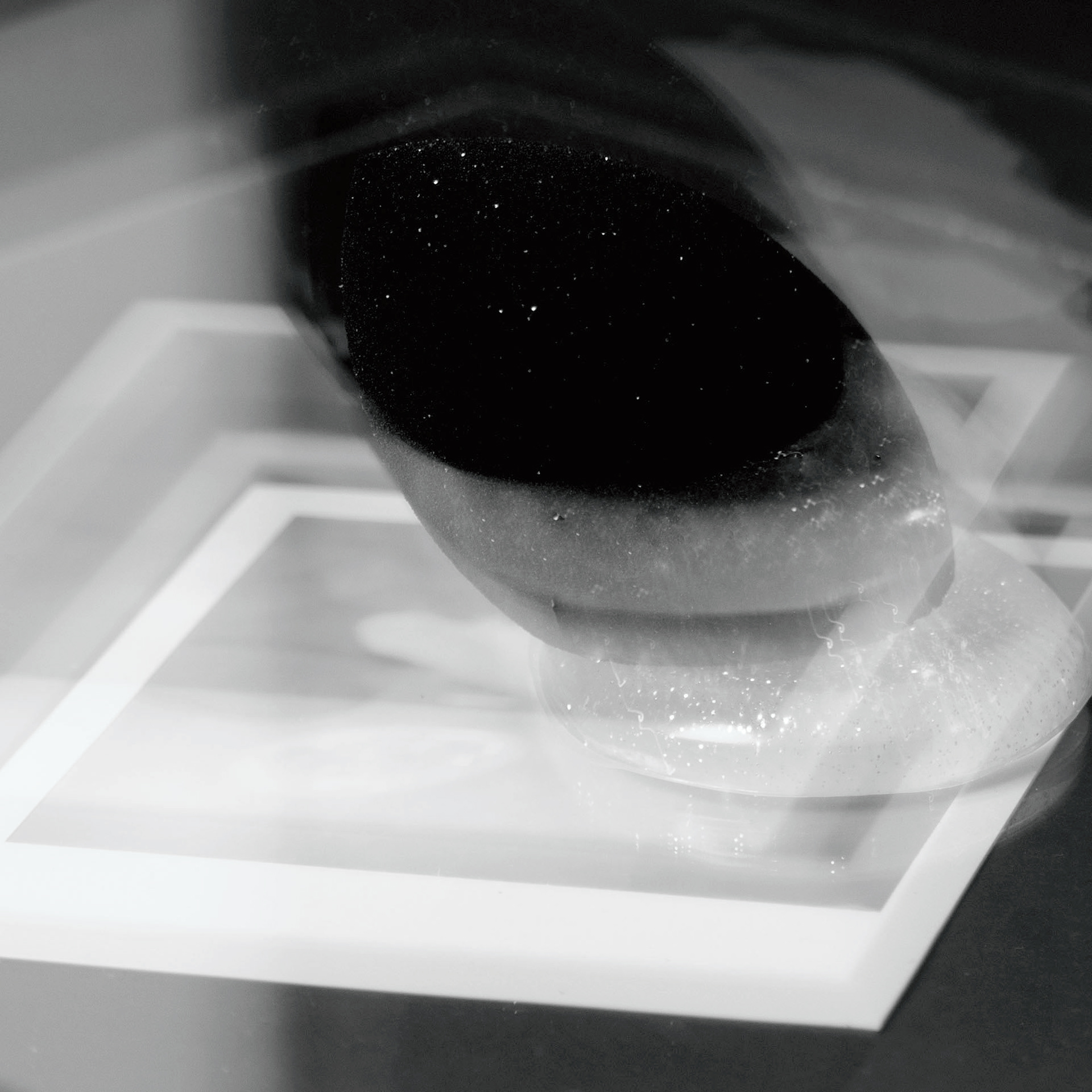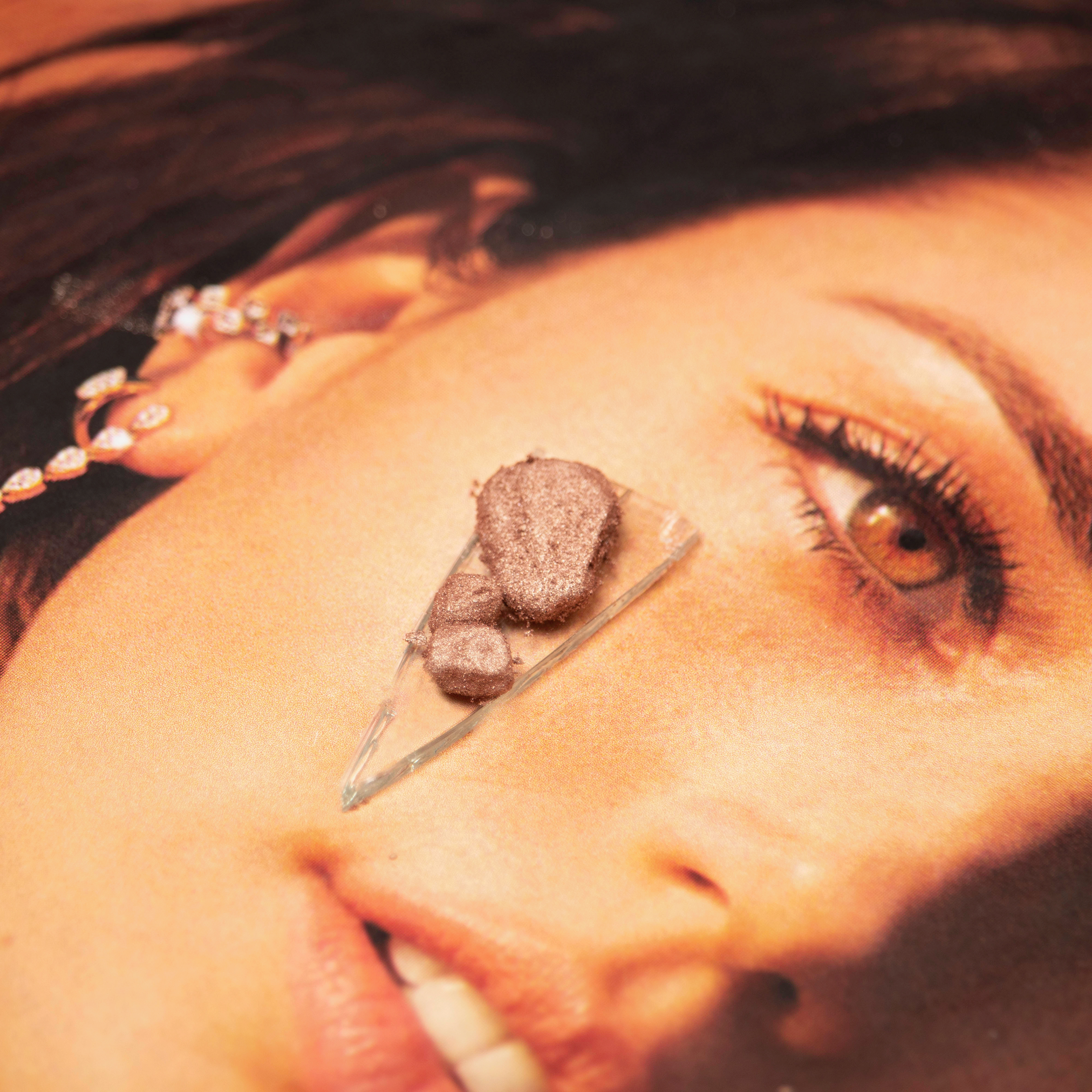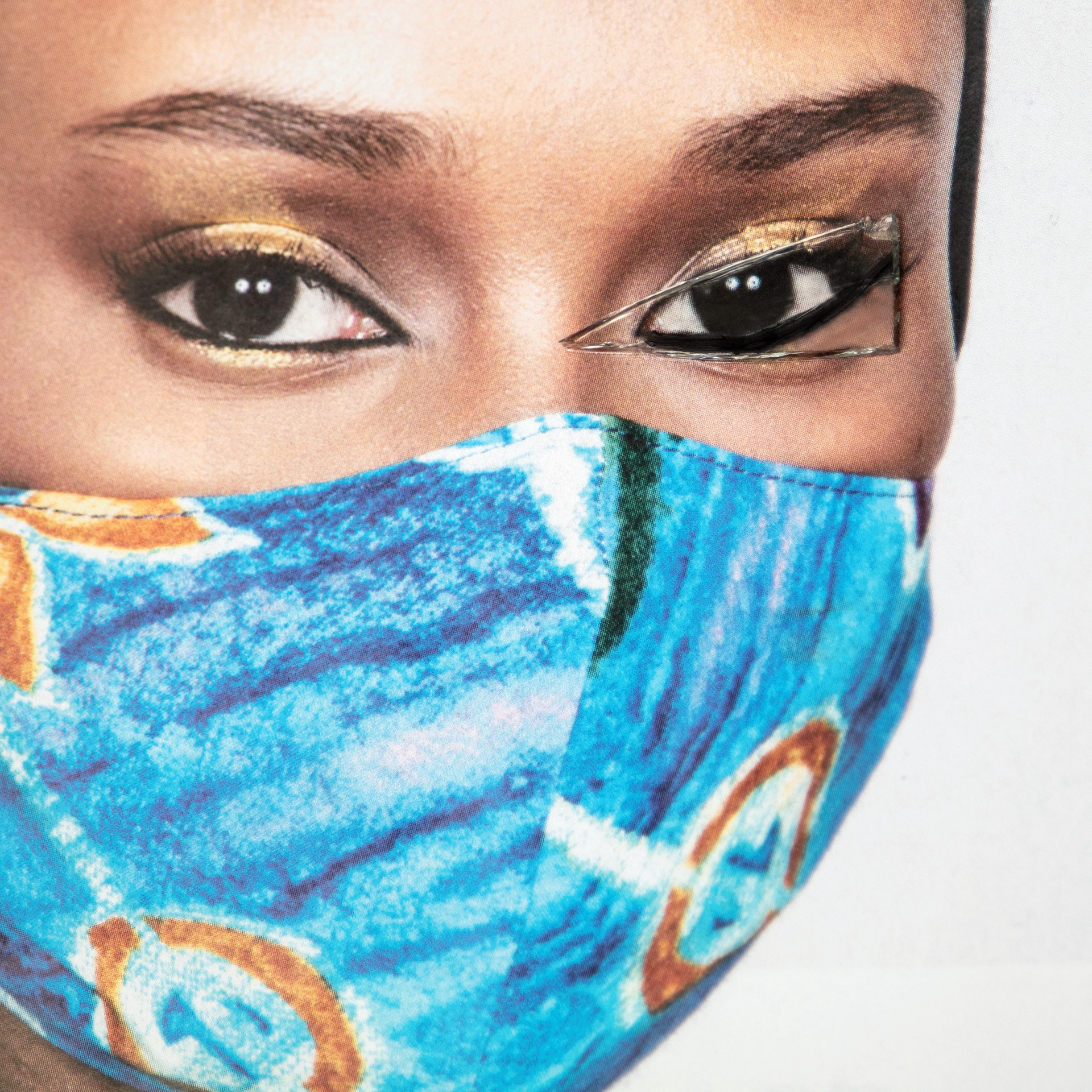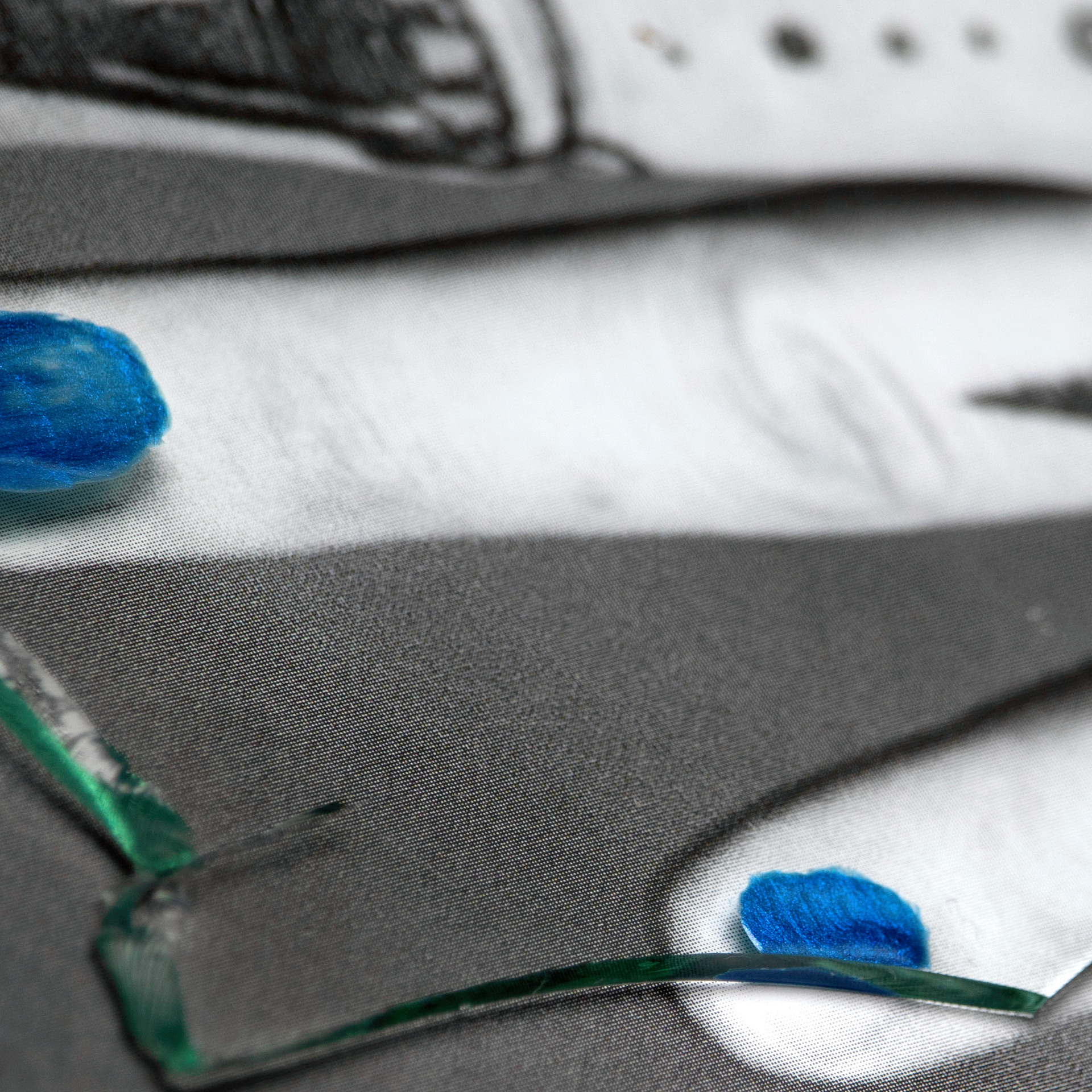 , I have been utilizing Polaroid film, print magazines, glass (shards and sheet), and cosmetic materials.