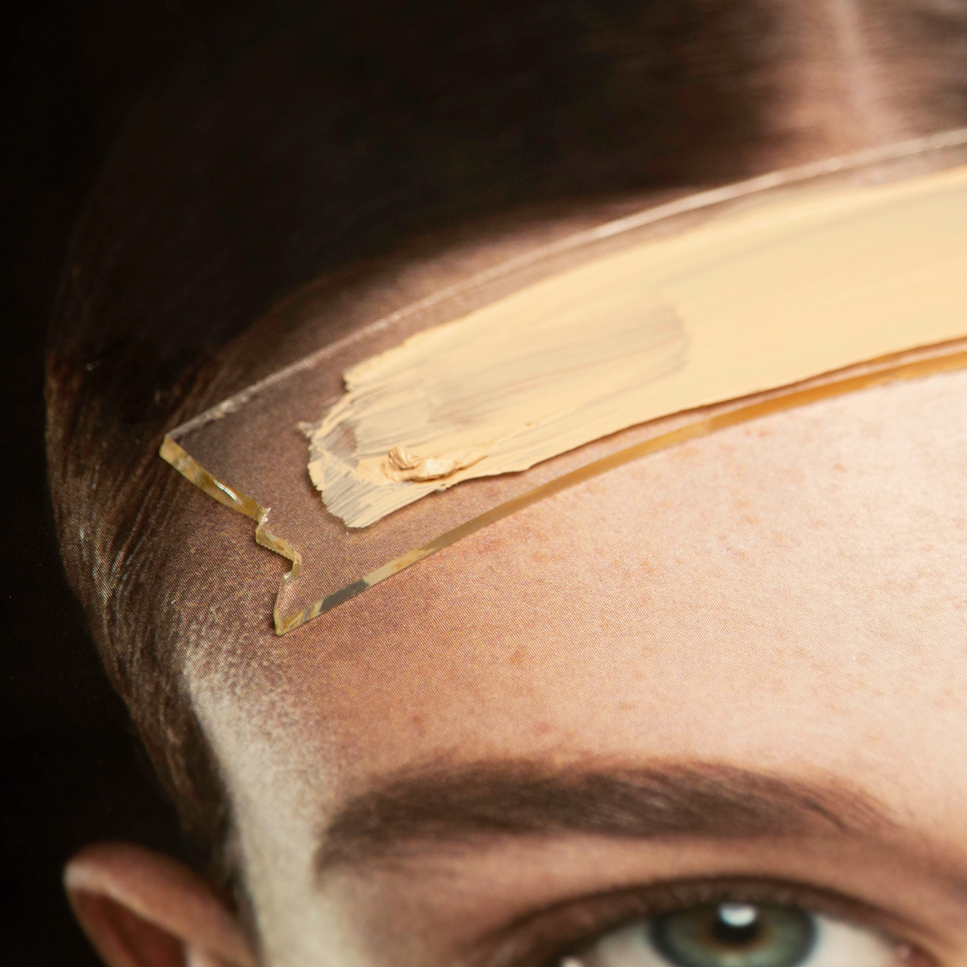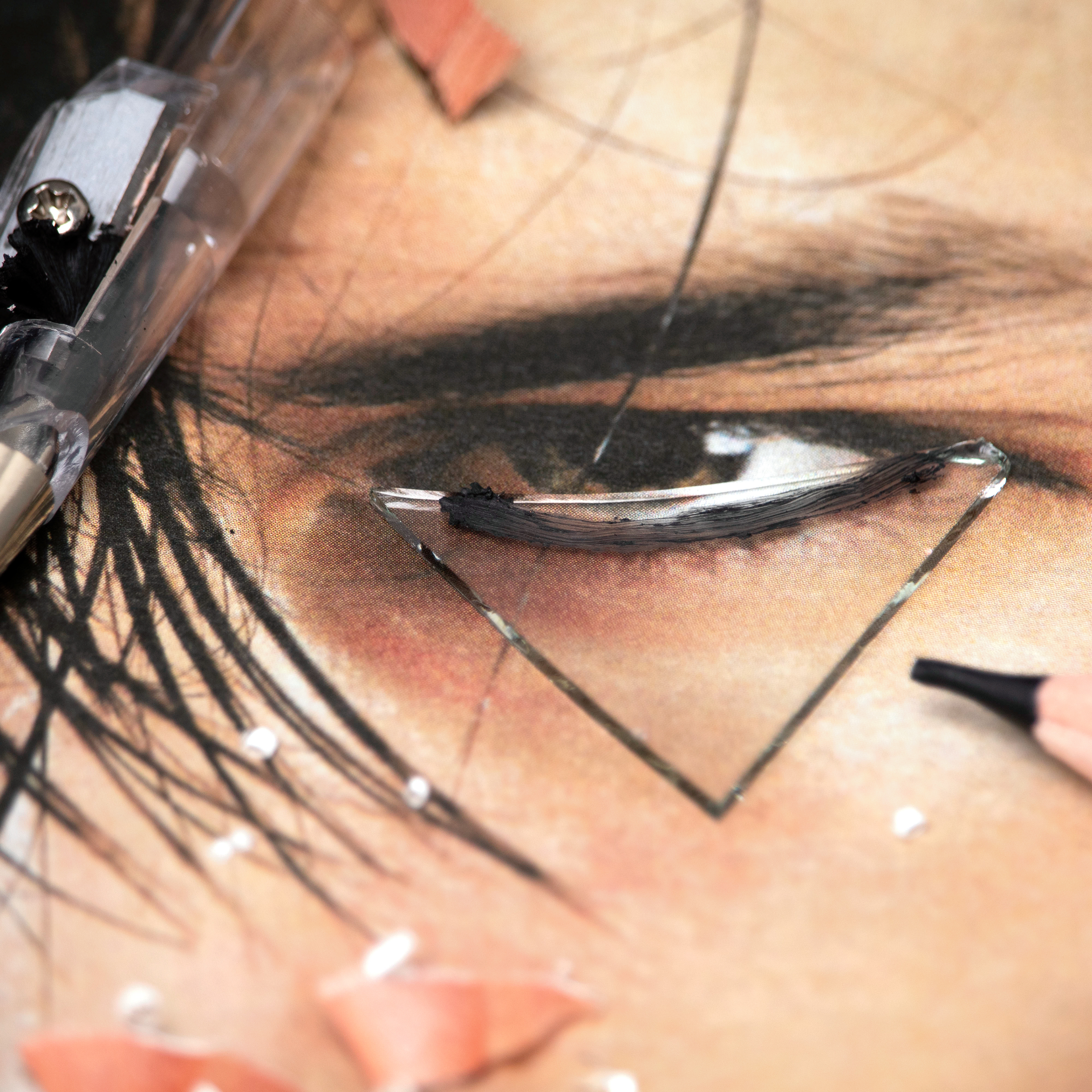 For the third layer, I apply cosmetics onto the glass.
